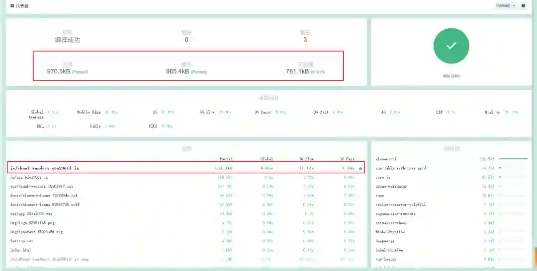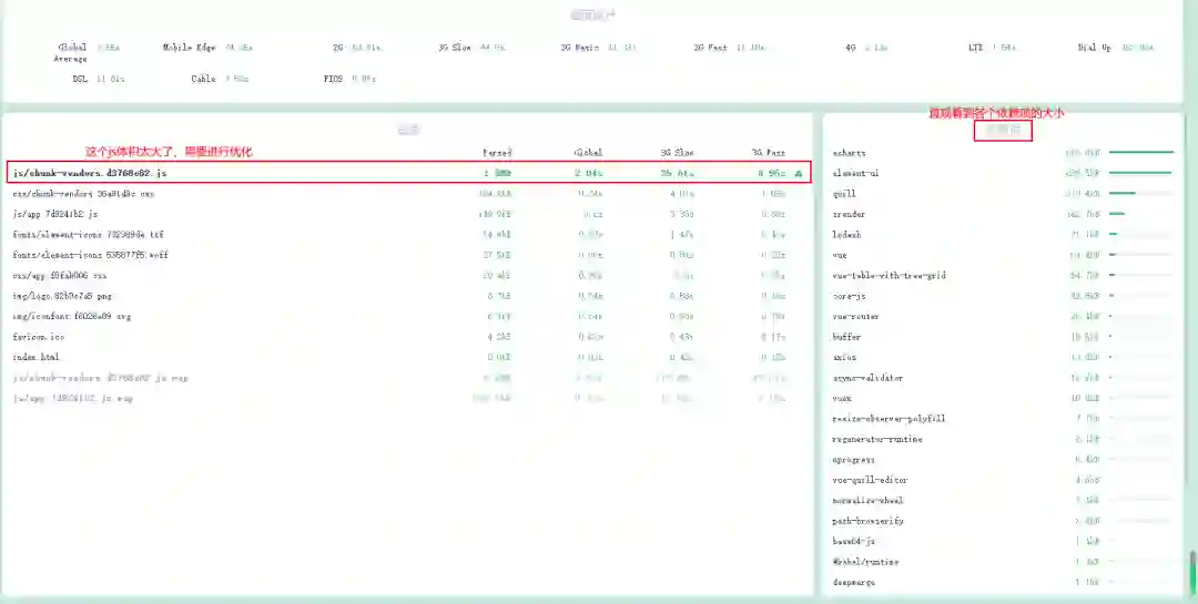 上边图片中标注的就是我们需要注意的,依赖项很多,导致打的包最终体积非常的大,相信这项目如果上线那么前端会先请求这个无比巨大的js文件,估计甲方爸爸会锤死前端人员。