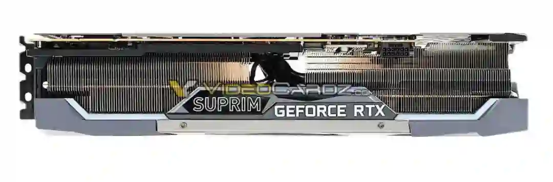 外媒 VideoCardz 近日曝光了基于 GA102 GPU 的旗舰微星 SUPRIM X显卡,这是这一代中最厚的显卡。它是一款完全定制的显卡,具有三风扇和 3.5 插槽设计。该卡提供具有 10752 CUDA 内核的 GA102 的完整实现。到目前为止,最重要的升级来自内存子系统,现在具有 21 Gbps 和 2 GB GDDR6X 模块(Micron IZU47 D8BZC)。