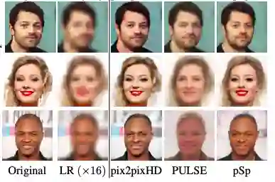 在这里,作者还证明了他们的框架可用于从相应的低分辨率(LR)输入图像构造高分辨率(HR)面部图像。
