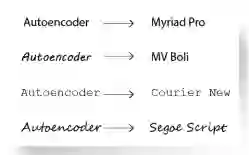 上图中的所有的笔迹, 内容都是Autoencoder, 但是字体多变, 比如: Segoe script, Courier New等等.