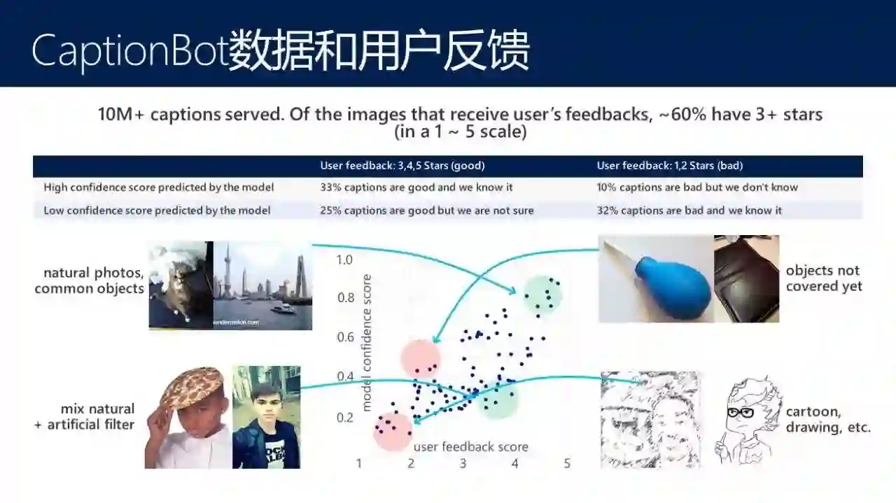做系统的原因在于,往往就算想法很好,但如果没有一个能够让用户亲身体验的系统,很难发现自身可能存在的问题,毕竟一开始不存在完美的人工智能。我们曾经做了一个分析,对 1000 万张照片的标题进行机器生成内容和用户态度的对比。在这个项目中,很多用户都积极提供了问题,并且提出了许多非常宝贵的修改建议。