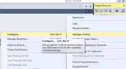 【步骤30】右击Project Browser中的愿景包,在快捷菜单选择Package Control | Configure。