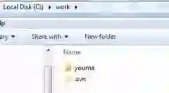 【步骤21】单击OK,可以看到work文件夹下有.svn子文件夹。