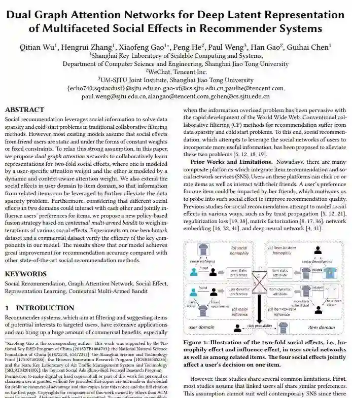 论文名称:Dual Graph Attention Networks for Deep Latent Representation of Multifaceted Social Effects in Recommender Systems