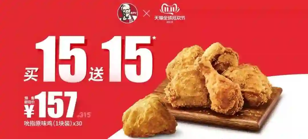 肯德基天猫旗舰店一样的,出了很多超值大套餐,如果最近有聚会可以考虑。单品也有活动,比如原味鸡 30 块套装,折算下来每块只要 4 块多。