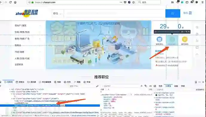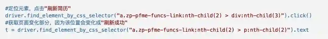 其中sleep(3),主要是点击后页面可能还未加载。所以等待页面加载完后再进行其他操作。然后我们进入登陆后的页面去查找我们想要得到的自动刷新简历的功能。找到元素,右键“复制”->”CSS选择器”即可复制位置。