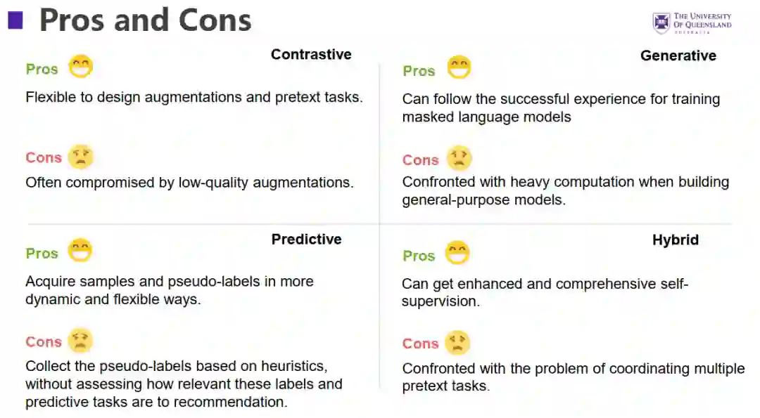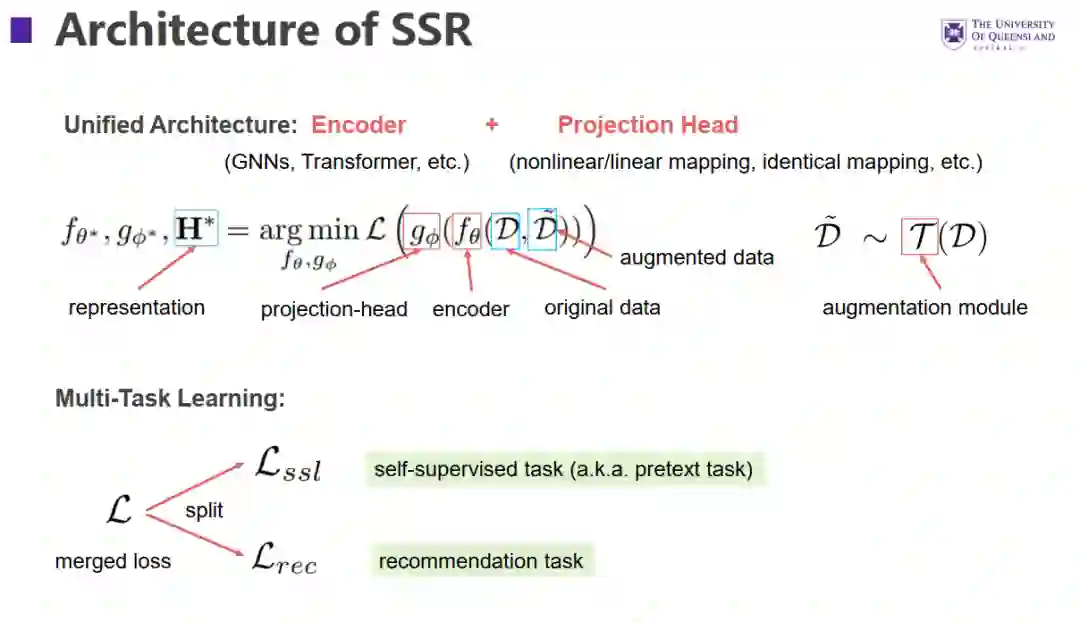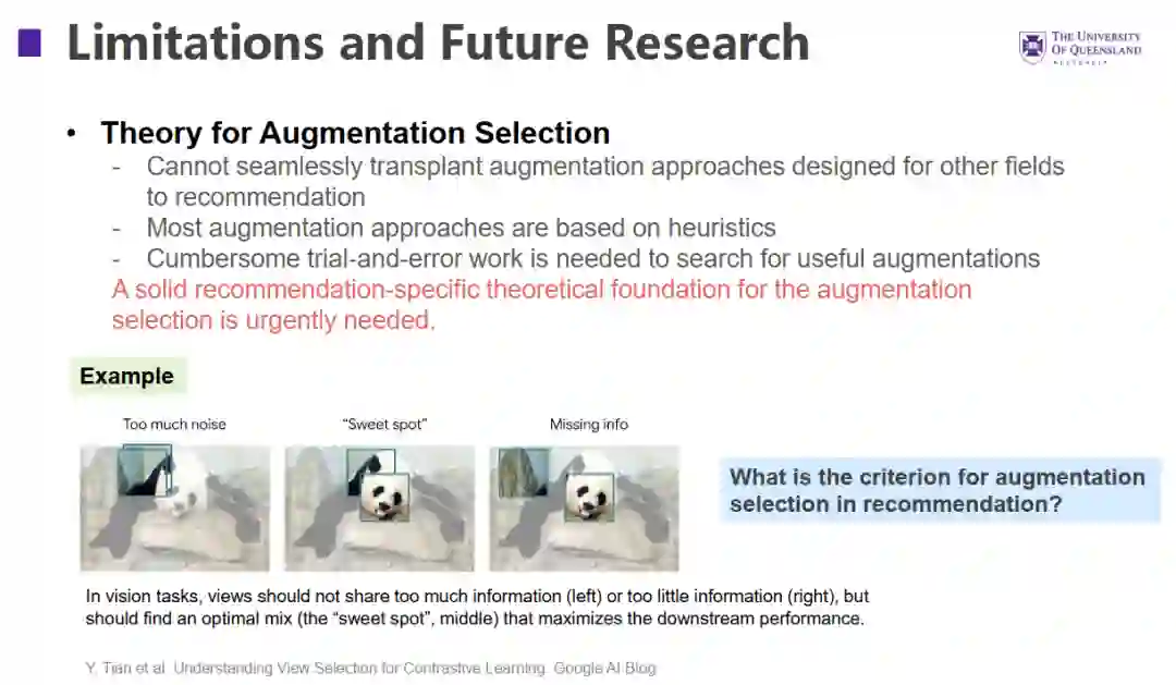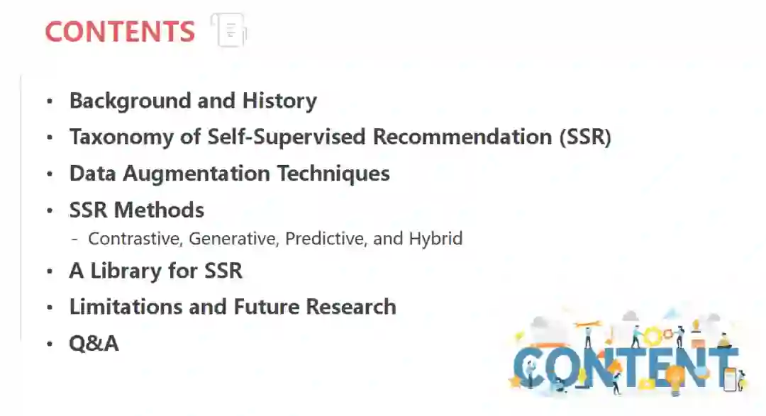 ,该教程来自于昆士兰大学团队。其首先对推荐系统的研究背景与发展历史进行简述,然后介绍了对比学习与基于对比学习的推荐系统的相关定义,随后总结了经典的数据增强技术,