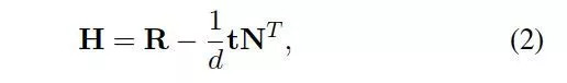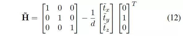 深度d未知,但是可以直接归入平移参数中去,所以可以通过方程(5)得到下面的方程组: