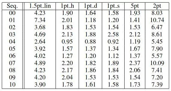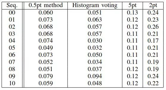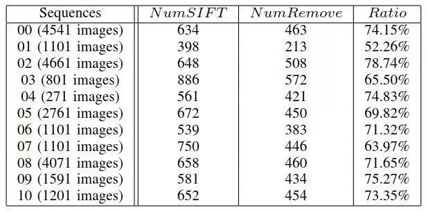 表4 对于所有KITTI影像序列内点恢复率