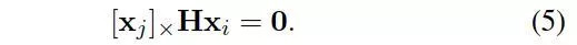 为了进一步消除尺度参数,在方程(1)两边同时乘以一个反对称矩阵得到: