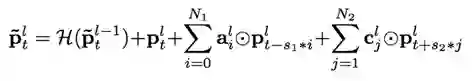 对cFSMN进一步改进,我们得到了深度前馈序列记忆网络(DFSMN)。DFSMN利用了在各类深度神经网络中被广泛使用的跳跃连接(skip-connections)技术,使得执行反向传播算法的时候,梯度可以绕过非线性变换,即使堆叠了更多DFSMN层,网络也能快速且正确地收敛。对于DFSMN模型,增加深度的好处有两个方面。一方面,更深的网络一般来说具有更强的表征能力,另一方面,增加深度可以间接地增大DFSMN模型预测当前帧的输出时可以利用的上下文长度,这在直观上非常有利于捕捉序列的长程信息。具体来说,我们把跳跃连接添加到了相邻两层的记忆模块之间,如下面公式所示。由于DFSMN各层的记忆模块的维数相同,跳跃连接可由恒等变换实现。