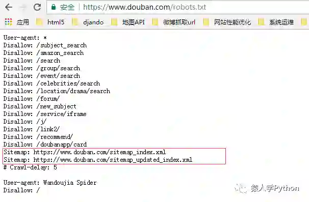 我们在工作中写的爬虫大多是一次性和临时性的任务,需要你快速完成工作就好,当遇到上面情况,试着看下robots.txt文件。
