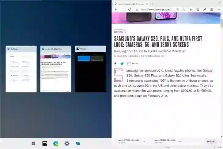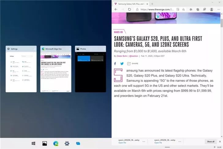任务视图(允许查看在 Windows 10X 上运行的应用程序)同样也获得了更新,用户可以使用它将应用程序展开到特定的显示器上。
