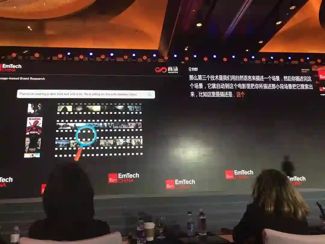 我们用自然语言来描述一个电影中的场景,然后它就可以自动根据你的描述把这个电影片段搜索出来,比如,我们要搜house of cards中的一个片段,“Claire和Frank坐在蓝色沙发上”,大家看到下面这段场景就出来了。