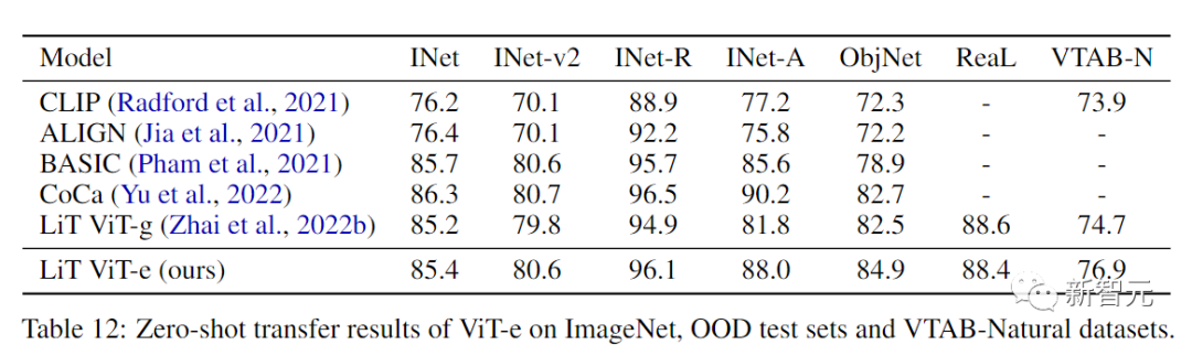 研究人员也进一步证实了这一点,可以观察到 ViT-e在ImageNet上只比ViT-G好一点,但ViT-e在PaLI的视觉语言任务上有很大的改进。例如,ViT-e在COCO字幕任务上比ViT-G多出近3个CIDEr点。任务上比ViT-G多出3分。这也暗示了未来在视觉语言任务中使用更大的ViT骨架模型的空间。