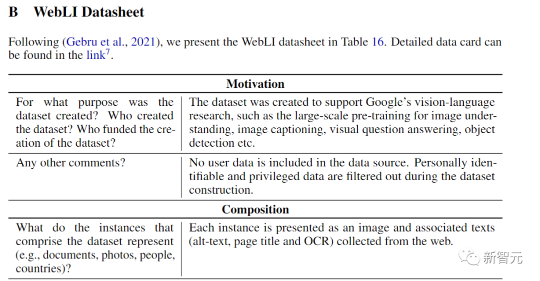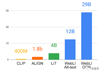 模型的训练使用的是一个公开的图像集合,其中包括自动爬取的109种语言的标注,文中也称之为WebLI数据集。