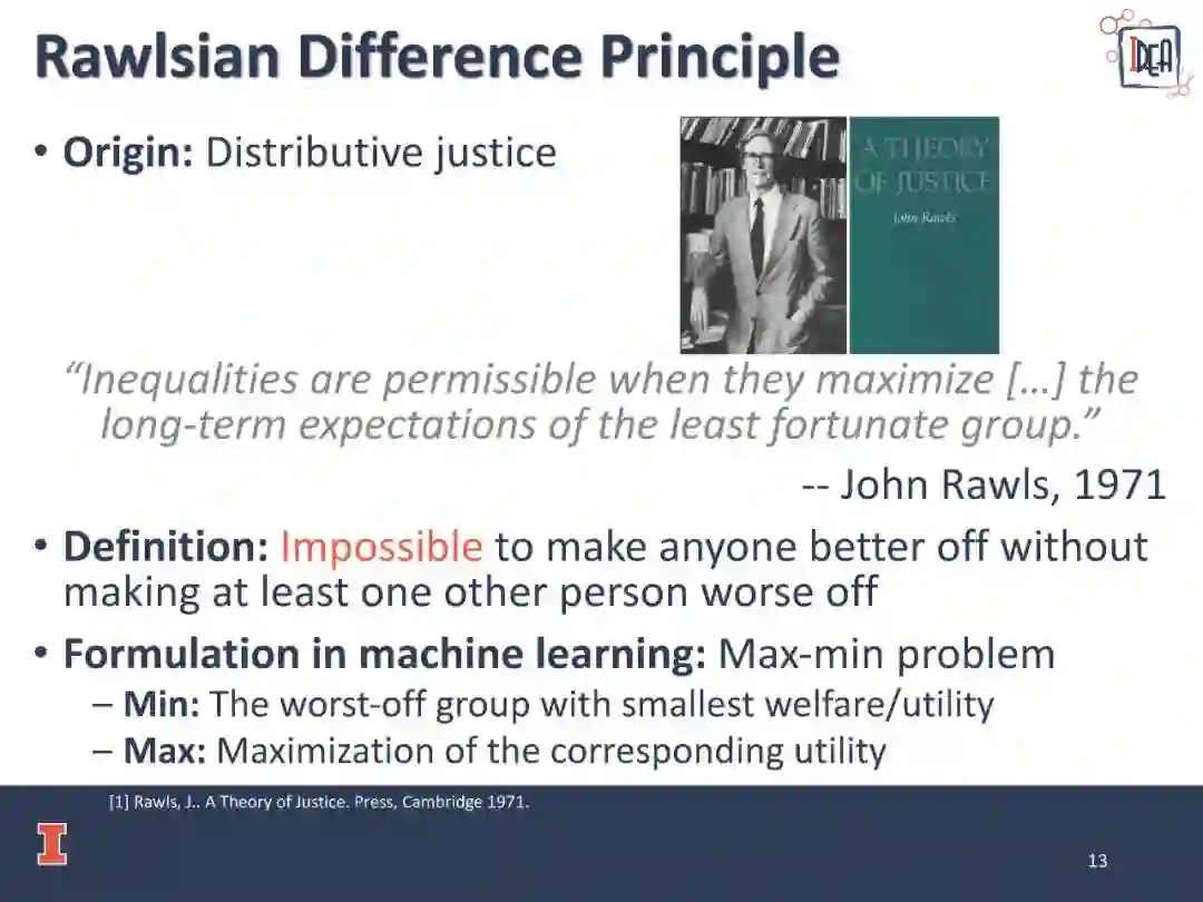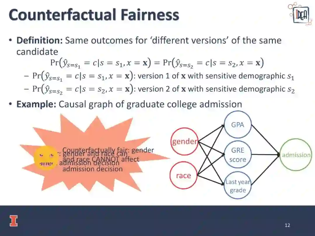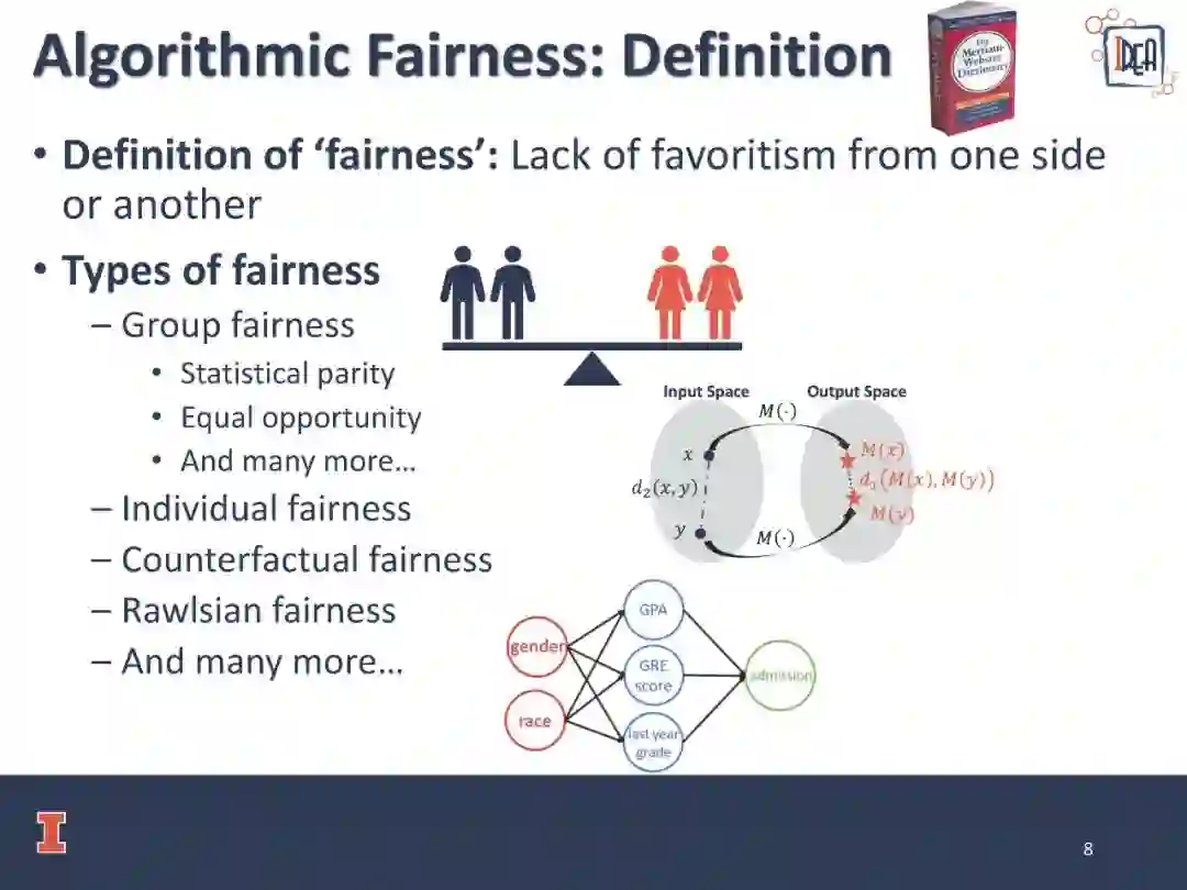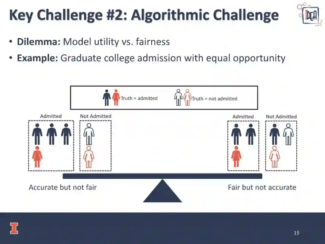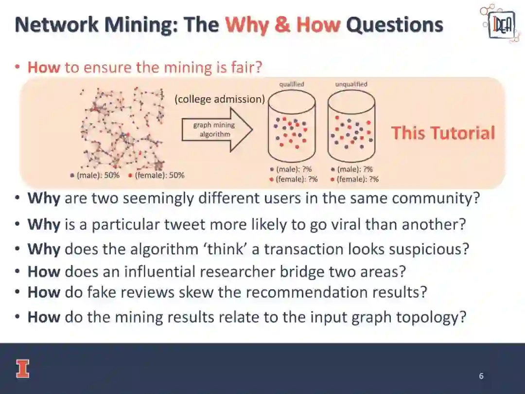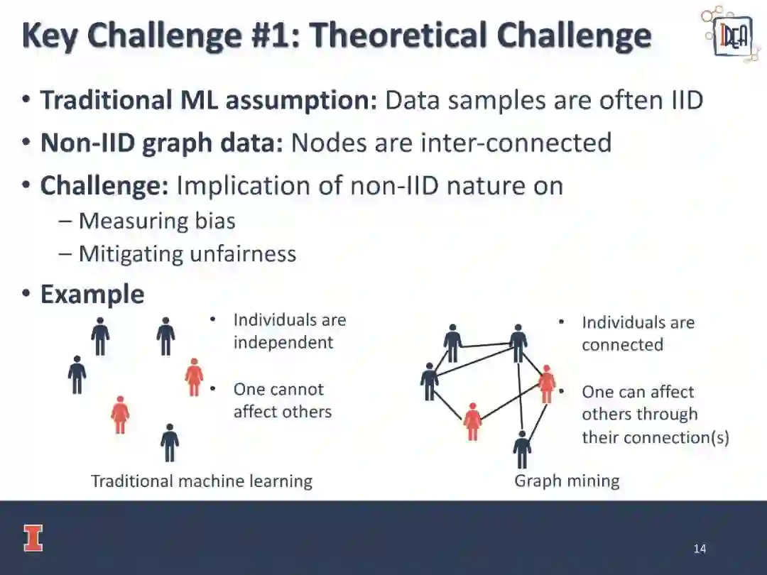 在当今日益互联的世界,图挖掘在许多现实世界的应用领域发挥着关键作用,包括社交网络分析、建议、营销和金融安全。人们作出了巨大的努力来发展广泛的计算模型。然而,最近的研究表明,许多被广泛应用的图挖掘模型可能会受到潜在的歧视。图挖掘的公平性旨在制定策略以减少挖掘过程中引入或放大的偏差。在图挖掘中加强公平性的独特挑战包括: (1)图数据的非iid性质的理论挑战,这可能会使许多现有研究背后的公平机器学习的基本假设无效,(2) 算法挑战平衡模型准确性和公平性的困境。本教程旨在(1)全面回顾图挖掘方面最先进的技术,(2)确定有待解决的挑战和未来的趋势。特别是,我们首先回顾了背景、问题定义、独特的挑战和相关问题;然后,我们将重点深入概述(1)在图挖掘背景下实施群体公平、个人公平和其他公平概念的最新技术,以及(2)图上算法公平的未来研究方向。我们相信,本教程对数据挖掘、人工智能、社会科学等领域的研究人员和实践者具有吸引力,并对现实世界的众多应用领域有益。