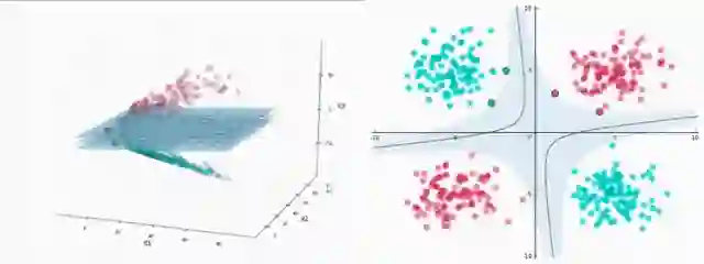 我之前已经很明确的提过,在某个地方出现了根号 2!在这个例子中,我想展示一下向高维空间映射的过程,因此我选了一个很具体的映射。一般而言,这是很难确定的。不过,多亏了 over』s theorem,我们能确定的是通过将数据映射到高维空间确实更可能使数据线性可分。