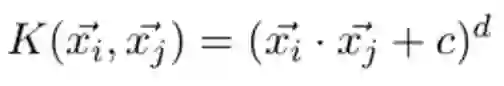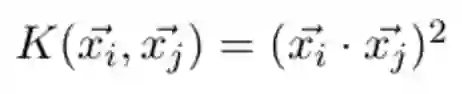 如果数据集中有 n 个点,SVM 只需要将所有点两两配对的点积以寻找分类器。仅此而已。当我们需要将数据映射到高维空间的时候也是这样,不需要向 SVM 提供准确的映射,而是提供映射空间中所有点两两配对的点积。