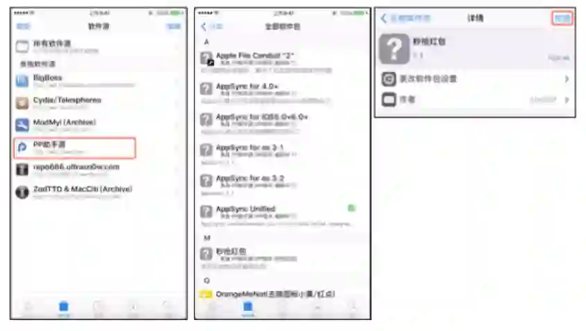提示:先在 软件源 里面添加上面软件源的链接,再到pp助手源里面的全部软件包里面下载 Apple File Conduit "2"