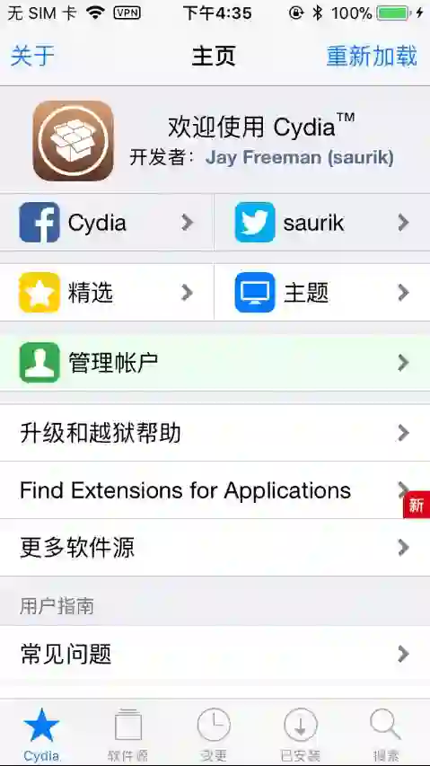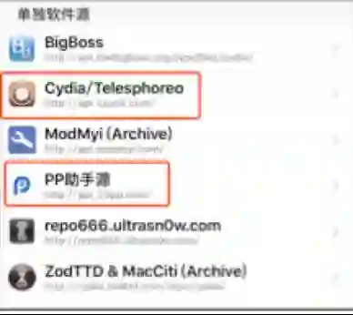 软件源:http://apt.saurik.com与http://apt.25pp.com
