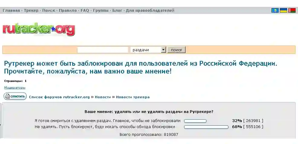 据 Lenta.ru 报道,他们发现 RuTracker 近日从 Roskomnadzor 的禁止登记册中消失,这意味着俄罗斯最大的盗版资源网站 RuTracker.org 被解封。