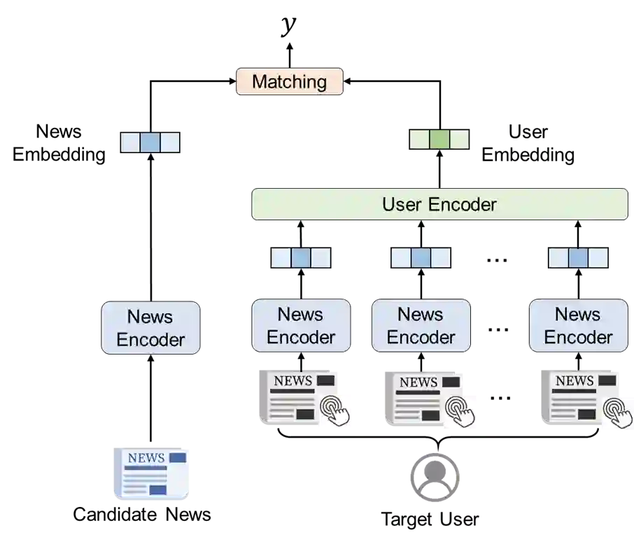 新闻推荐属于一种特殊的个性化推荐,相比于商品、电影等内容的推荐,新闻事件每时每刻都在更新,对于系统来说每条新闻都是全新的内容,这就使得系统无法获得足够的用户交互数据来训练推荐模型,因此,必须从新闻本身出发,加强对内容的理解。尽管之前也有针对新闻推荐的算法模型,但那些模型给用户推荐的往往是同质化的新闻,极易造成用户反感,难以精准匹配用户对新闻的实际需求。