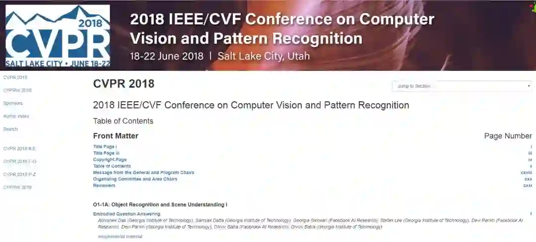 官网也放出了今年CVPR 2018 proceedings论文列表,大家可以下载查看。