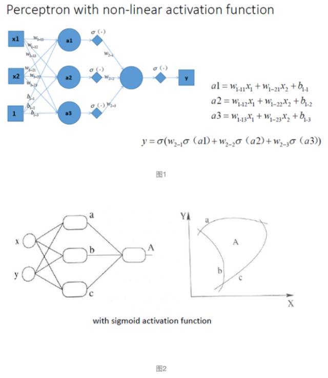 一层很多时候是远远不够的,前面讲过,简单的线性分类器就可以看成是一层的神经网络,比如上图,激活函数是signmoid,那就可以看成是二分类的逻辑回归!