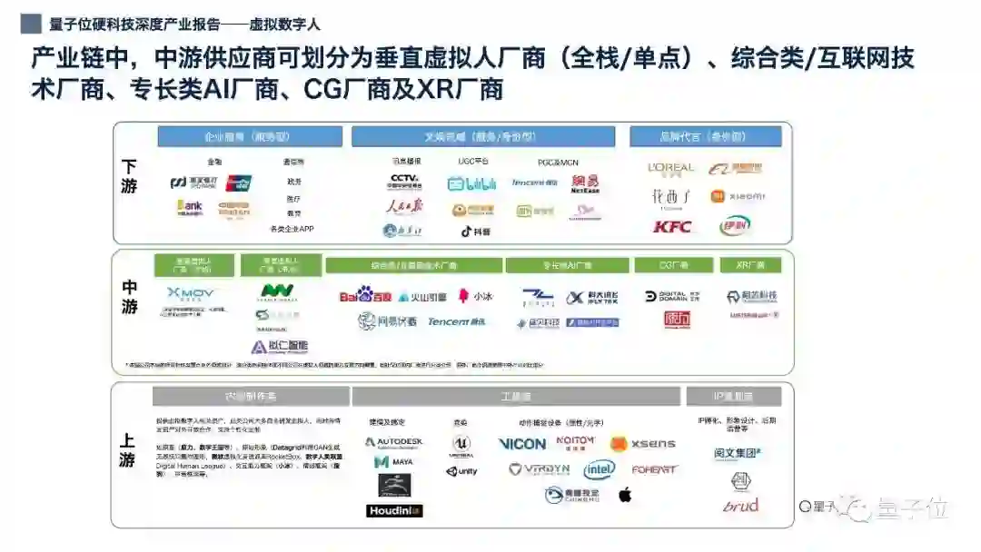 (我国的虚拟数字人产业生态,具体有哪些厂商在参与建设,它们在产业链上位置和所处的阵营又到底为何,详细可参阅上图。)