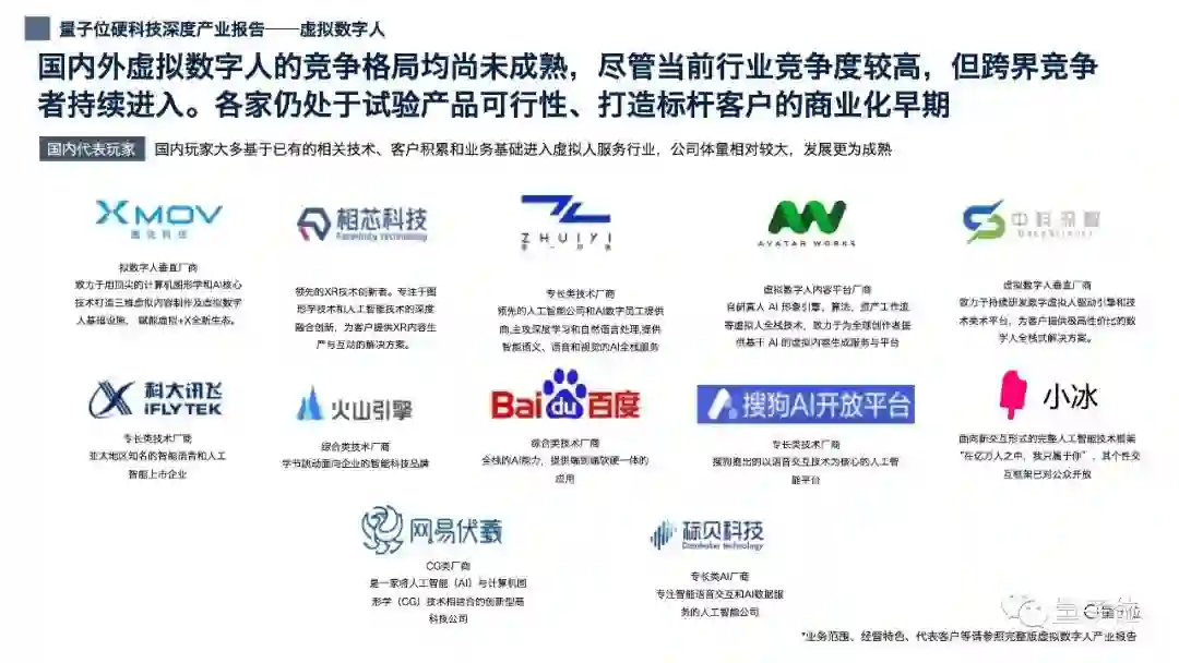 但值得注意的是,中外的虚拟数字人厂商在具体玩家、技术水平、关键场景、产品形态和运营方式上都具有明显差异。