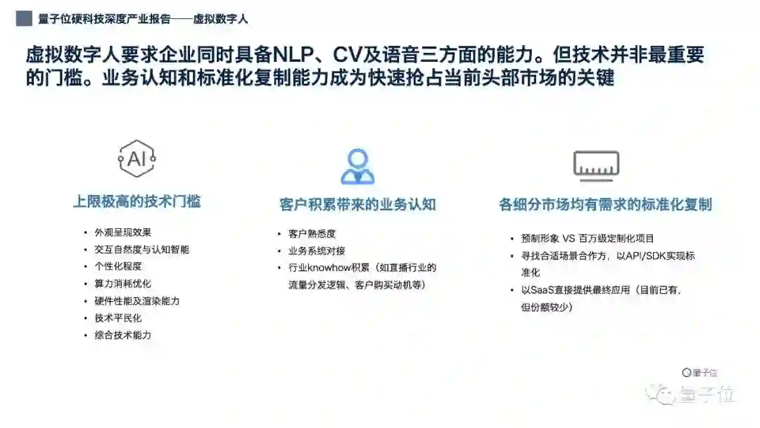 想从这背后找到创业投资的机会吗?快跟着看一下这份量子位智库出品《虚拟数字人深度产业分析报告(精华版)》。文末还有完整版报告的下载链接。