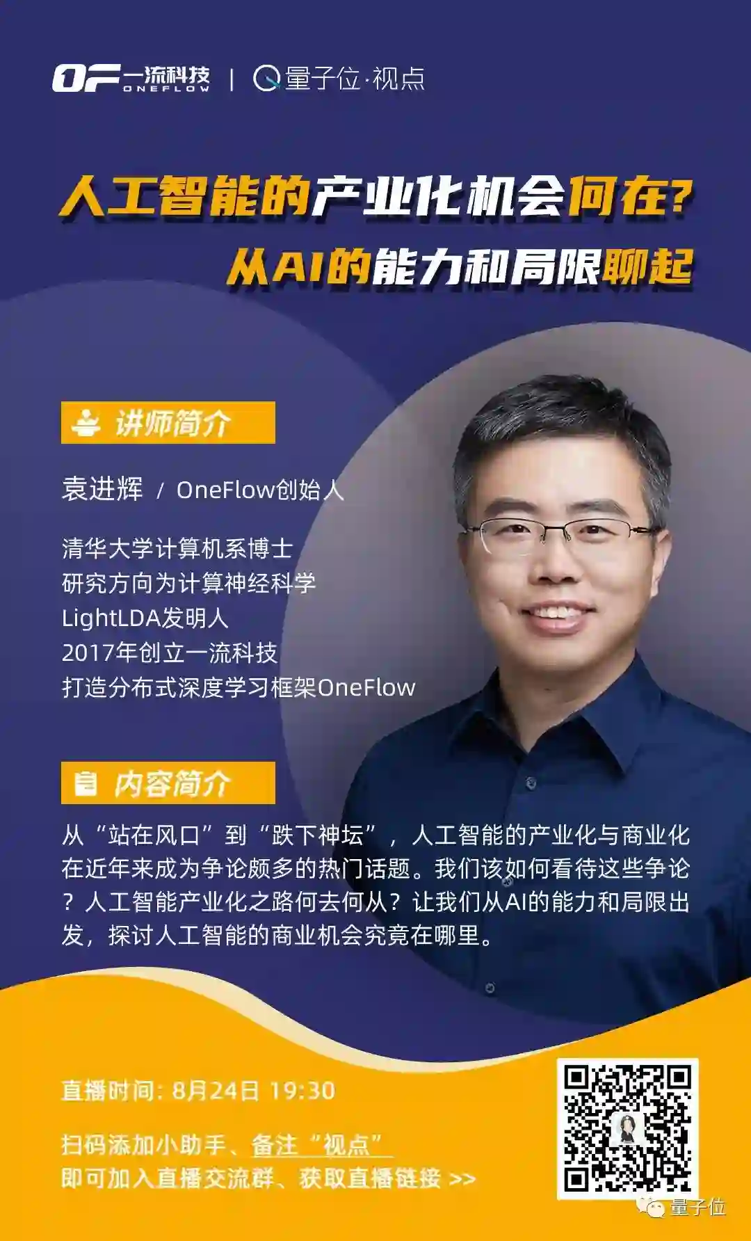 人工智能产业化之路何去何从?清华博士、一流科技CEO在线分享,从AI的局限与能力出发、探讨人工智能的商业机会,扫码报名~