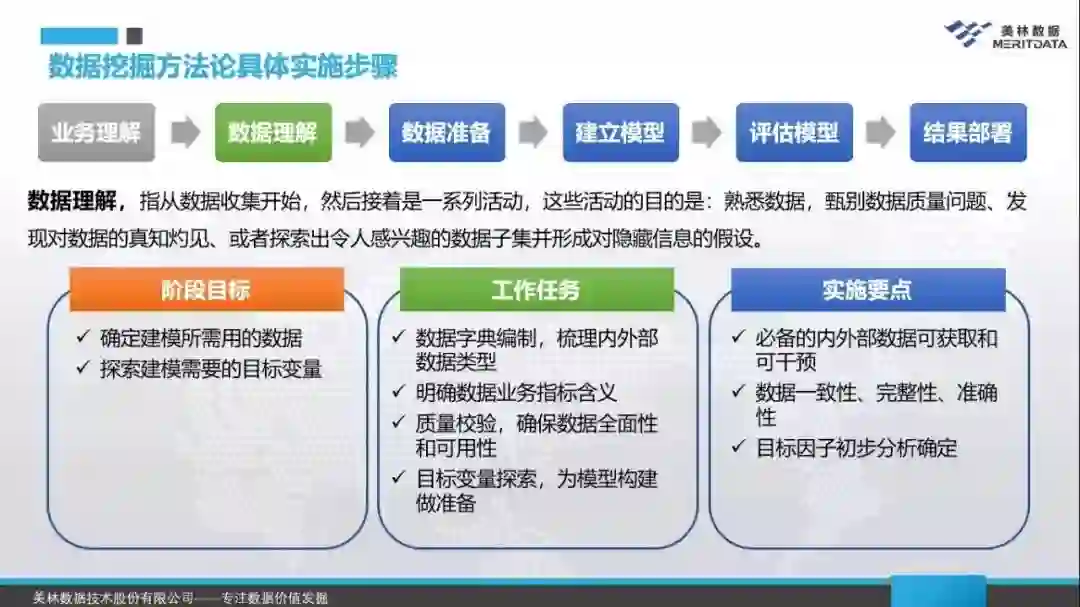 数据理解,指从数据收集开始,然后接着是一系列活动,这些活动的目的是:熟悉数据,甄别数据质量问题、发现对数据的真知灼见、或者探索出令人感兴趣的数据子集并形成对隐藏信息的假设。