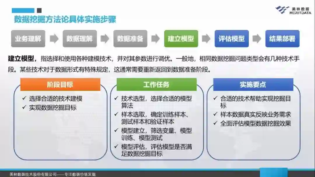 建立模型,指选择和使用各种建模技术,并对其参数进行调优。一般地,相同数据挖掘问题类型会有几种技术手段。某些技术对于数据形式有特殊规定,这通常需要重新返回到数据准备阶段。