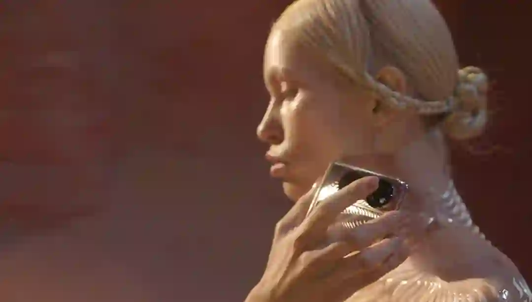 华为邀请了服装设计师 Iris Van Herpen,她将服装设计的灵动带到了手机之上,如磁场引力聚集的花纹,轻盈而有序,科技与艺术在此共生。