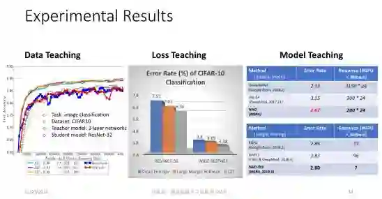 总结一下,当我们有一个 teacher model,它可以动态地设计训练数据集、改变模型空间、调整目标函数时,就会使得原来“student model”的训练更宽泛、更有效,它的边界就会被放大。 我们在三篇论文里面分别展示了很多不同数据集上的实验结果。