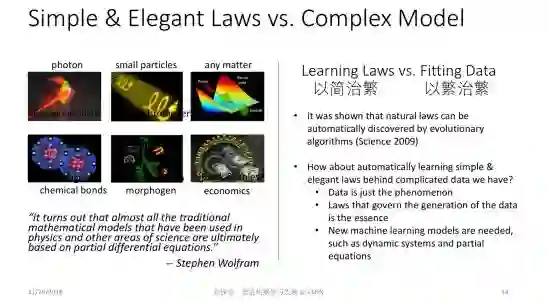 第二个方向也很有趣,它涉及到我们应该以何种方式来看待训练数据。深度学习是一个以繁治繁的过程,为了去处理非常复杂的训练数据,它使用了一个几乎更复杂的模型。但这样做真的值得吗?跟我们过去几十年甚至上百年做基础科学的思路是不是一致的?
