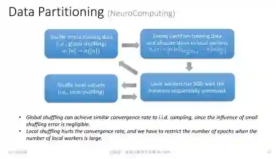 我们证明了:如果我先对数据进行全局置乱,然后再做数据切分,那么它和有放回的随机采样在收敛率上是基本一致的。但是如果我们只能做局部的数据打乱,二者之间的收敛率是有差距的。所以如果我们只能做局部的数据打乱,就不能训练太多 epoch,否则就会与原来的分布偏离过远,使得最后的学习效果不好。
