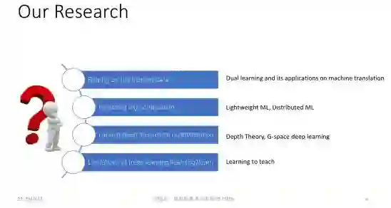 到此为止,我把最近这一两年微软亚洲研究院在机器学习领域所做的一些研究成果跟大家做了分享,它们只是我们研究成果的一个小小的子集,但是我觉得这几个方向非常有趣,希望能够启发大家去做更有意义的研究。