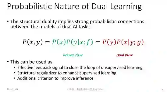 有了这样的思想以后,我们可以把两个对偶任务放到一起学,提供有效的反馈信号。这样即便没有非常多的标注样本,我们仍然可以提取出有效的信号进行学习。