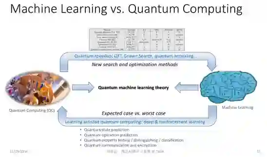 第一个方面涉及机器学习和量子计算之间的关系。量子计算也是一个非常火的研究热点,但是当机器学习碰到量子计算,会产生什么样的火花?其实这是一个非常值得我们思考的问题。
