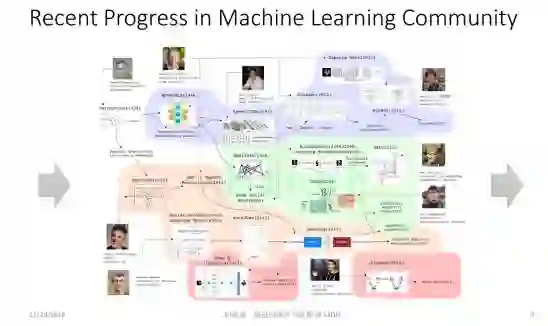大家都知道,最近这几年机器学习非常火,也取得了很多进展。这张图总结了机器学习领域的最新工作,比如 ResNet、胶囊网络、Seq2Seq Model、Attention Mechanism 、GAN、Deep Reinforcement Learning 等等。