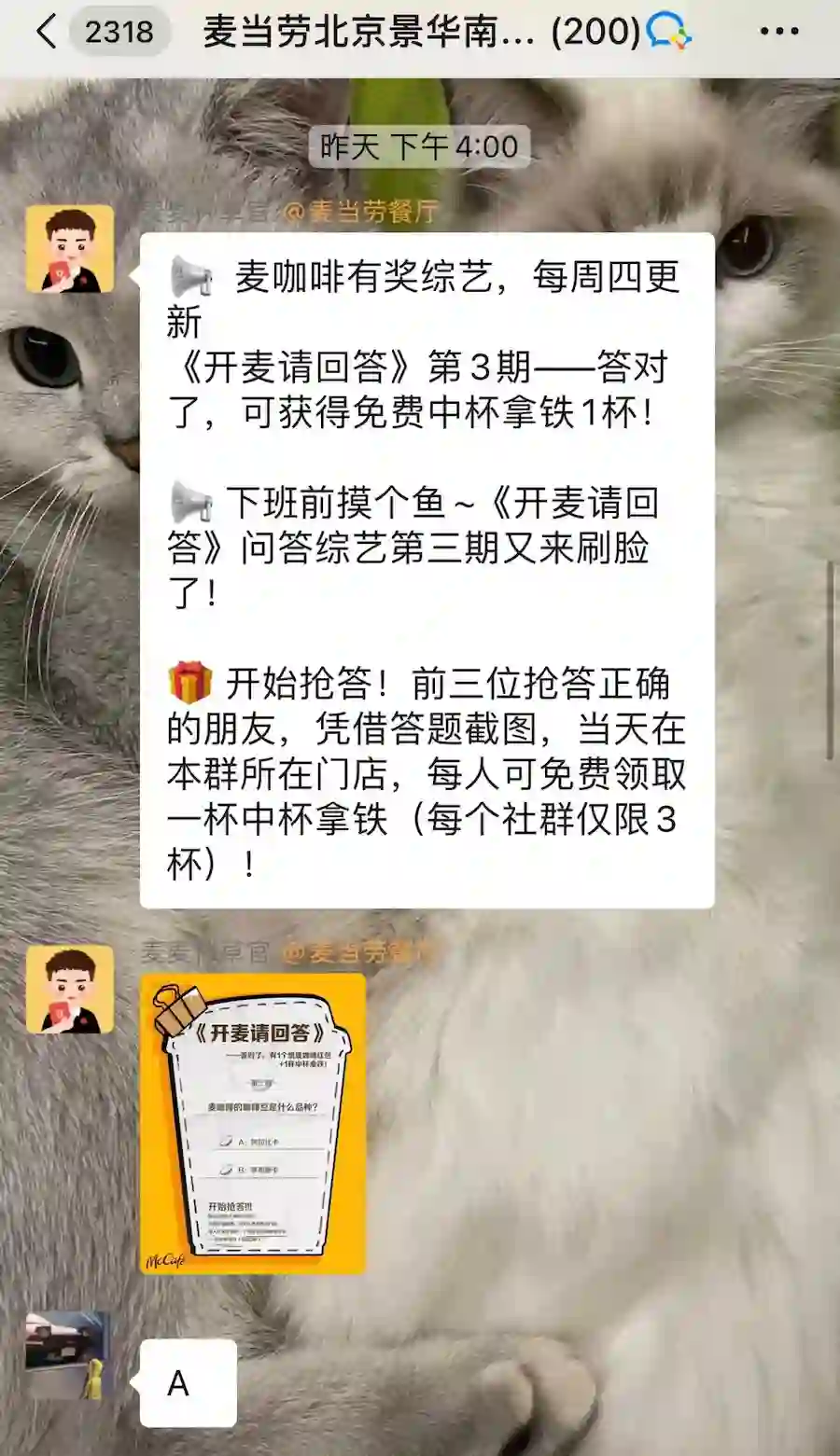二是全国大型促销活动,例如麦当劳抖金店线上直播,会在群里同步、互动;