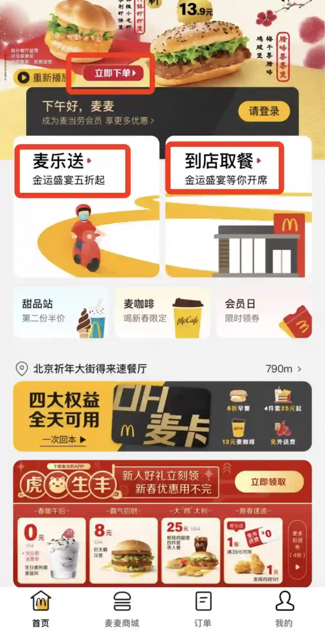 。2017年6月,麦当劳中国更新APP功能,用户可提前在APP上点单,到门店完成支付后正式下单,且APP提供麦乐送外卖订餐、附近餐厅以及优惠券等服务。