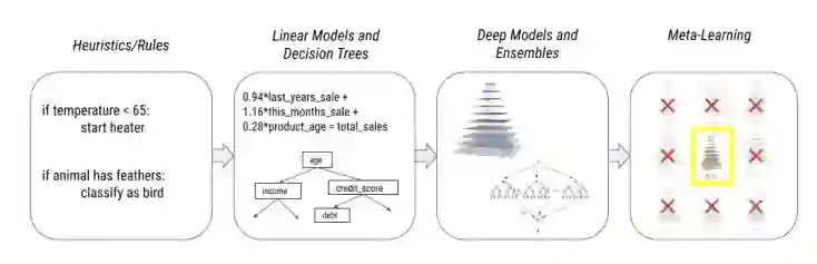 人工智能的迅速发展导致现在我们现在所研究和使用的AI模型越来越复杂化,从手工规则和启发法到线性模型和决策树再到集成和深度模型,最后再到最近的元学习模型。