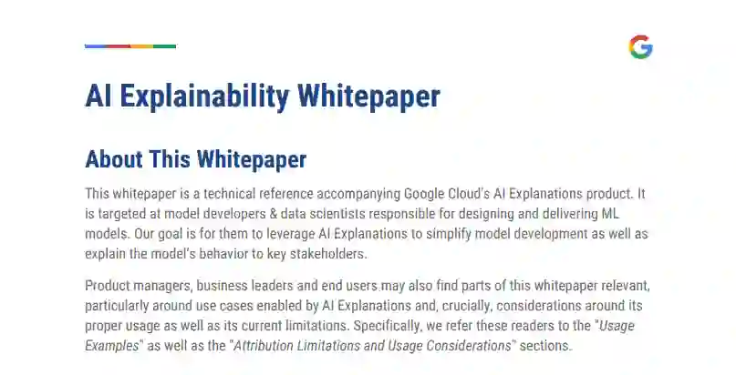 【导读】近几年,随着人工智能的迅速发展,人工智能对各行各业也产生了深远的影响。围绕人工智能建立的系统已经对医疗、交通、刑事司法、金融风险管理和社会的许多其他领域产生了巨大的价值。然而,人工智能系统仍然具有很多问题,为了保证人工智能系统的有效性和公平性,需要我们对人工智能具有深刻的理解和控制能力。所以,今天专知小编给大家带来的是Google可解释人工智能白皮书《AI Explainability Whitepaper》,总共27页pdf,主要介绍谷歌的AI平台上的AI的可解释性。