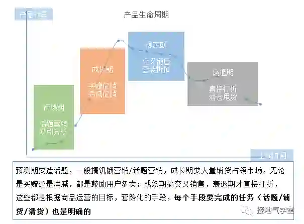 普众式BUFF都有明确的目标,比如商品运营,不同阶段目标/手法不一样(如下图)。