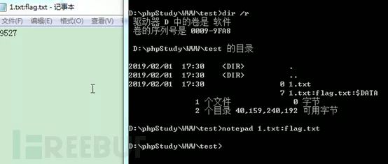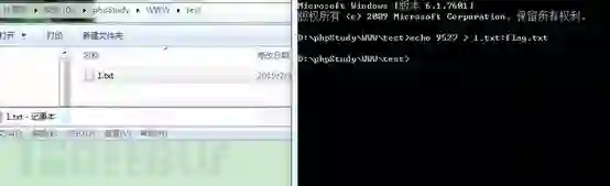 echo 9527 > 1.txt:flag.txt