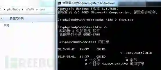 由于windows xp之后的系统对于ADS文件都没有执行权限,因此隐藏此类webshell需要用到文件包含来进行配合。